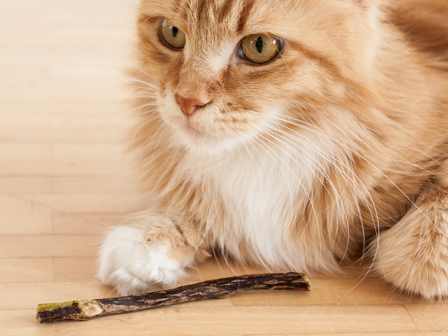 Matatabi gilt als das stärkste aller Katzenkräuter. Die Sticks enthalten den Wirkstoff Actinidin - ein Enzym, das die natürliche Ausschüttung von Glückshormonen in Katzen anregt und somit eine entspannende, euphorisierende und stimulierende Wirkung hat.