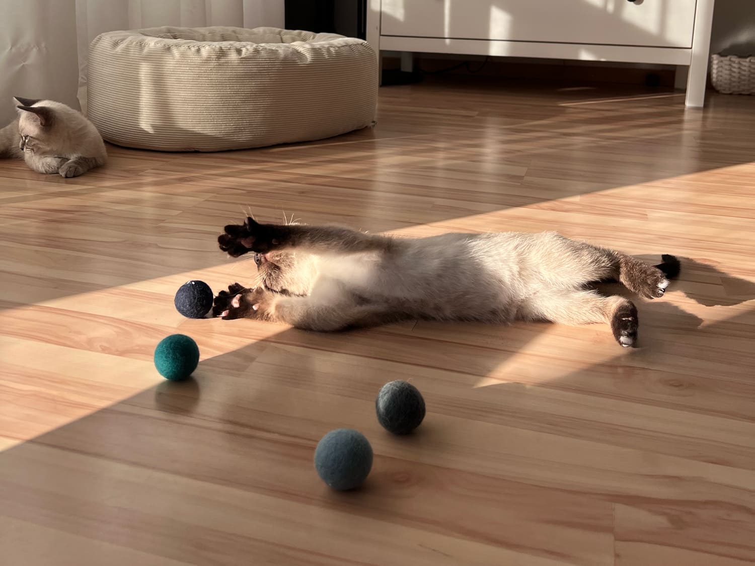 Katzen sind sehr verspielte Tiere und lieben es, mit ihren Besitzern zu interagieren. Interaktive Spielzeuge, die eine gemeinsame Aktivität zwischen Katze und Besitzer ermöglichen, sollten bevorzugt werden. Eine beliebte Möglichkeit ist das Spielen mit Bällen. Eine Katze kann stundenlang damit spielen und ihr Jagdinstinkt wird stimuliert. Wirf die Bällchen, verstecke sie unter der Decke oder halte es fest und "kämpfe" mit deiner Katze darum.