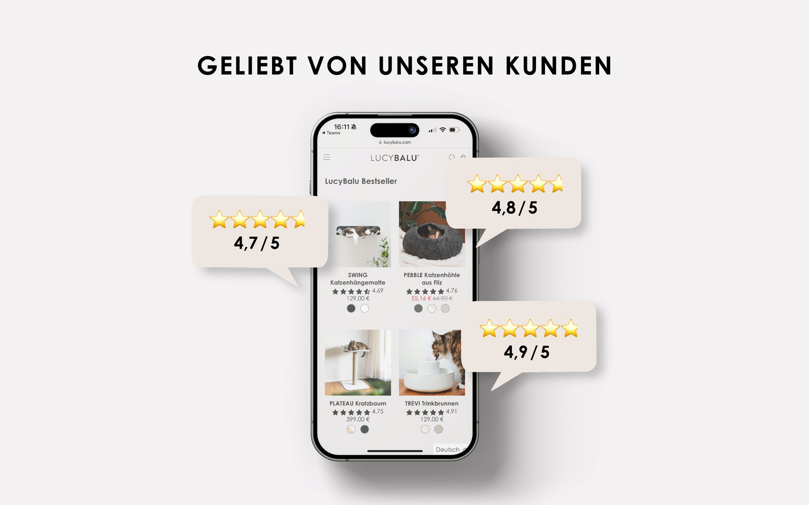 Unsere B-Ware sind Produkte mit kleinen optischen Makeln, die wir nicht als Neuware anbieten können – für die Tonne sind sie aber viel zu schade. Im limitierten B-Ware-Sale sicherst du dir hochwertige LucyBalu Produkte zu unschlagbaren Preisen – und machst gleichzeitig deiner Katze eine große Freude.