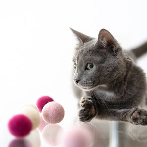 Mit deiner Katze spielen - Hello Kitty Style. Mit den Filzbällchen bringst du Abwechslung ins Leben deines geliebten Stubentigers.