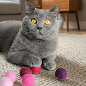 Katzenspielzeug zur Pantone Trendfarbe des Jahres 2023 "Viva Magenta". Die Filzbällchen bringen nicht nur Leben in die Bude, sondern vor allem Spielspaß für deine Katze.