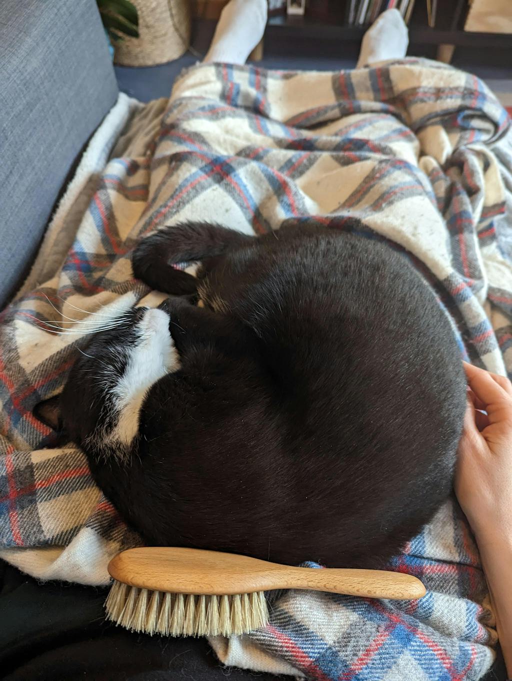 BUT THIS BRUSH IS PERFECT. After a quick sniff, she rubbed her face into it and immediately let me use it! Söckchen is currently fast asleep on my lap after 20 minutes of brushing.