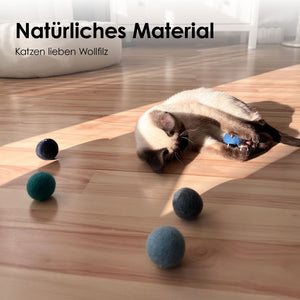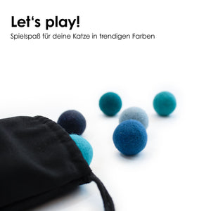 Braucht deine Katze Urlaub? Mag sein. Mit den OCEAN VIBES bringst du Urlaubsstimmung nach Hause. Katzen nehmen vor allem Blautöne wahr. Perfekt also, dass unsere Filzbällchen in sanften Blauabstufungen daherkommen – wie das Meer, das in der Sonne glitzert.