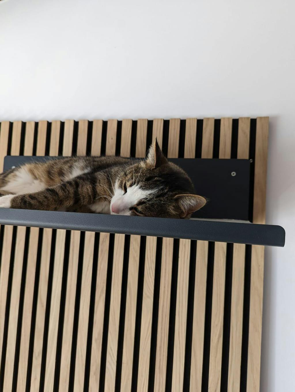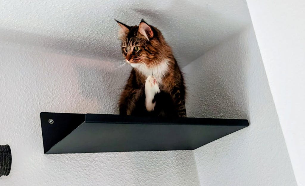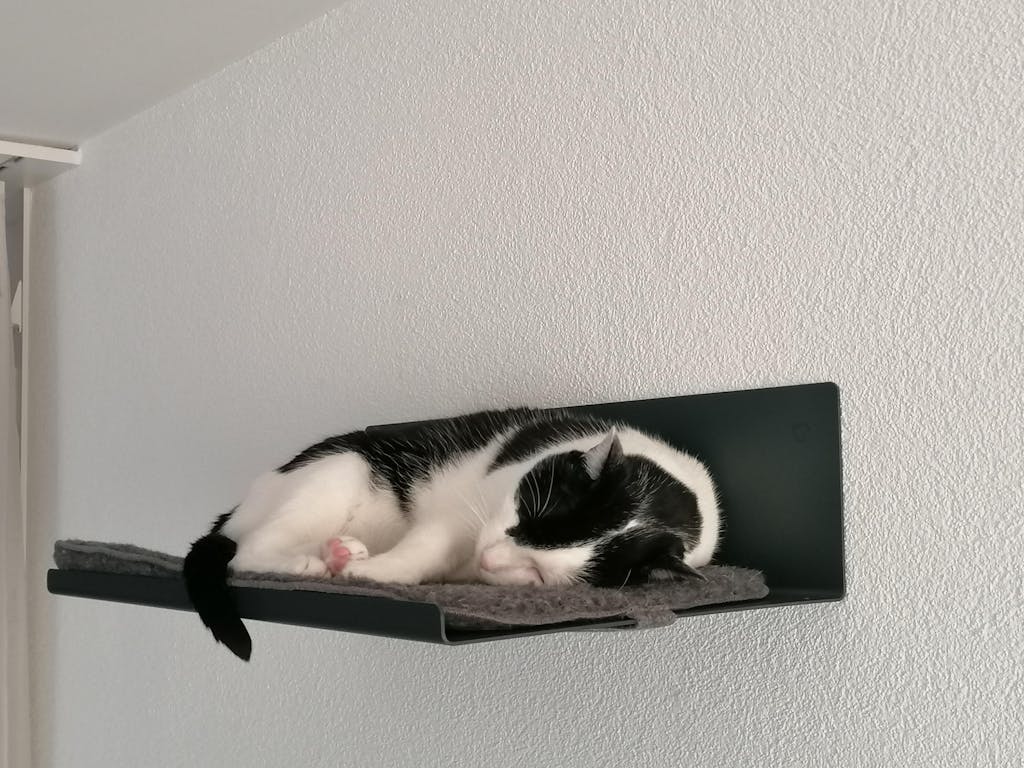 Die Wandliege ist sehr stylisch und hochwertig. Das Anbringen ist einfach und sie hängt sicher an der Wand. Unsere sehr sportliche Katze nutzt die Wandliege jeden Tag - vielen Dank!