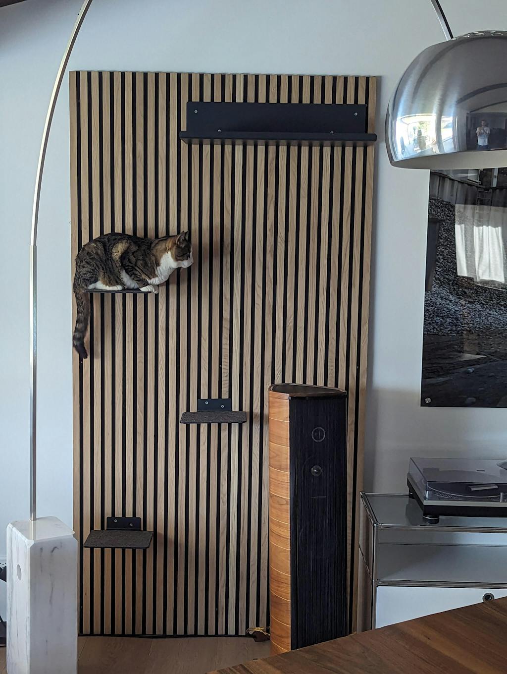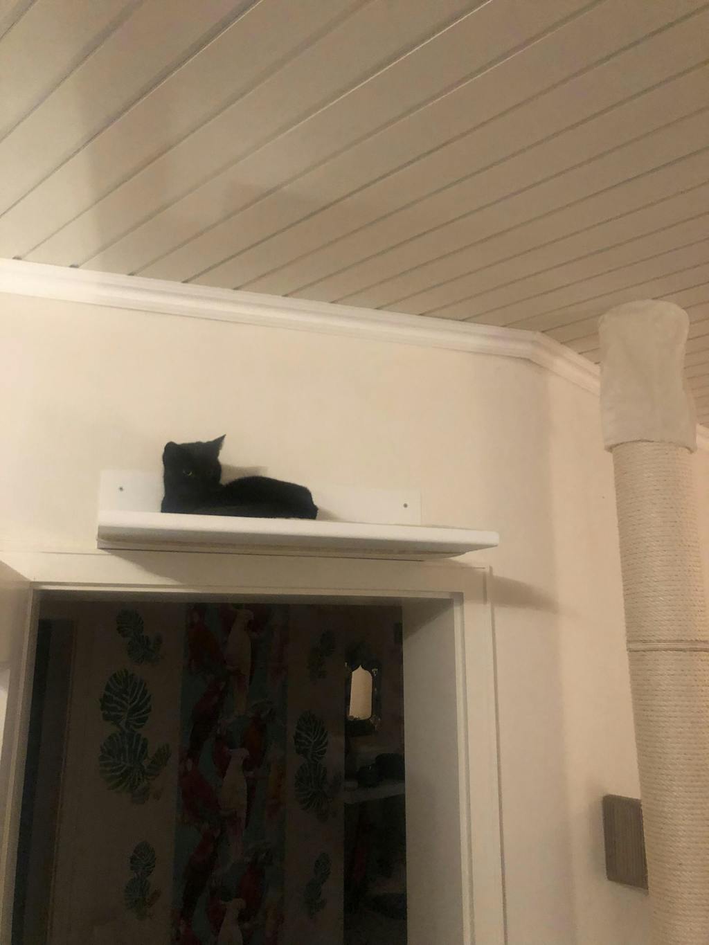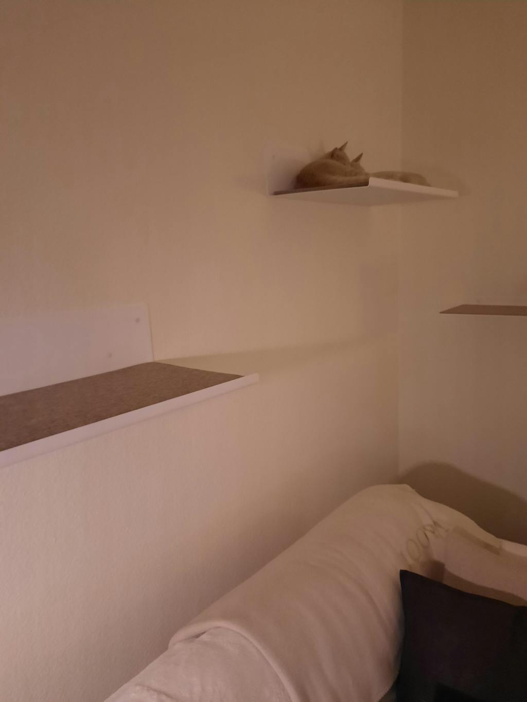 Leider war die Wandliege am Ende doch zu schwer für die Wand wo sie hätte hin sollen, jetzt ist es aber eine super Auf-dem-Regal-Liege. Sieht hochwertig auf und ist sehr unaufdringlich. Die Katzen lagen bzw. saßen auch schon Probe.