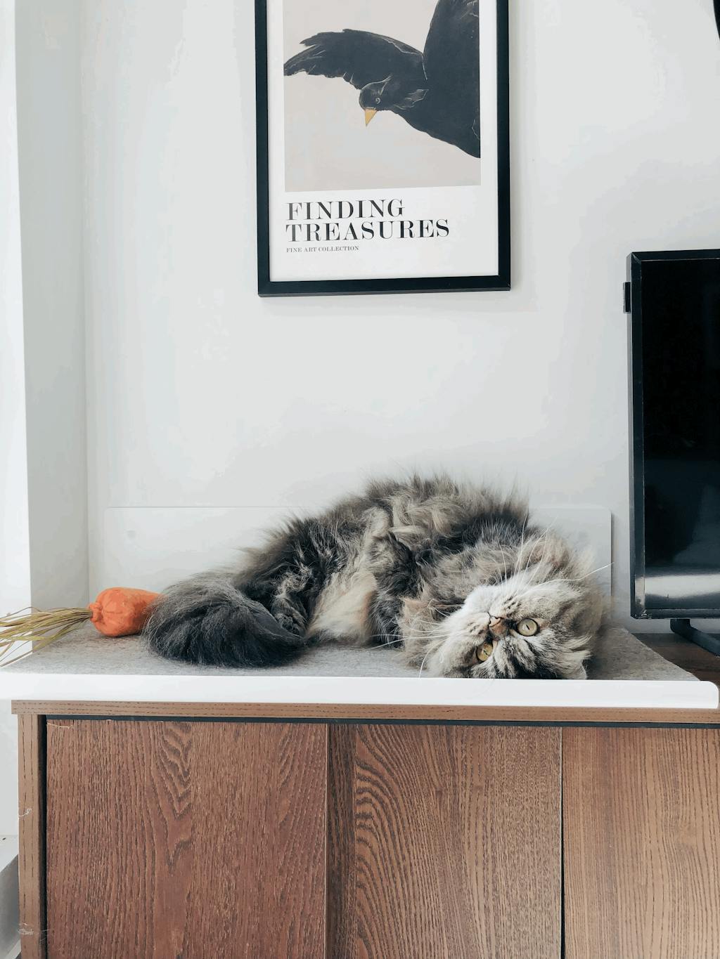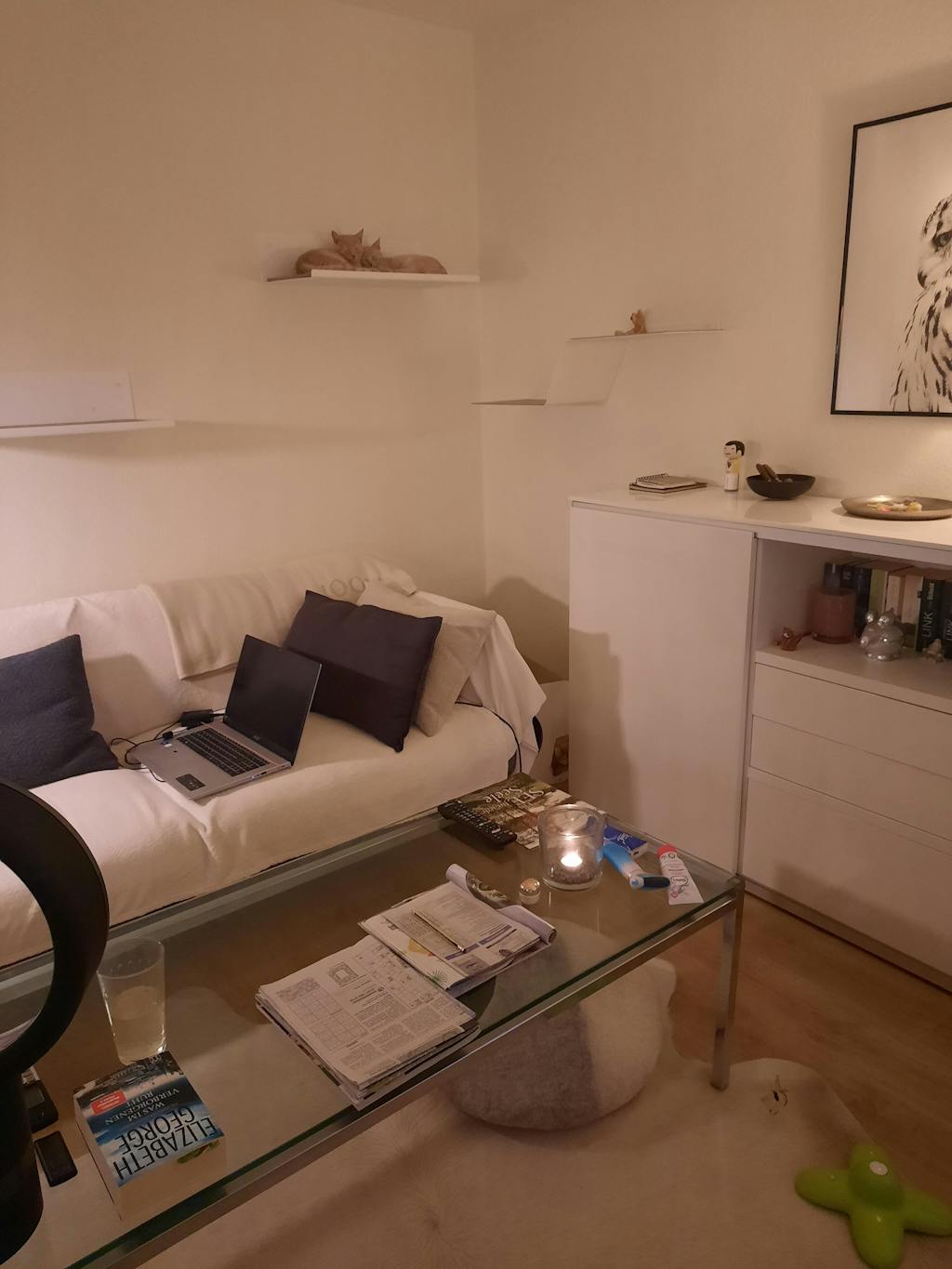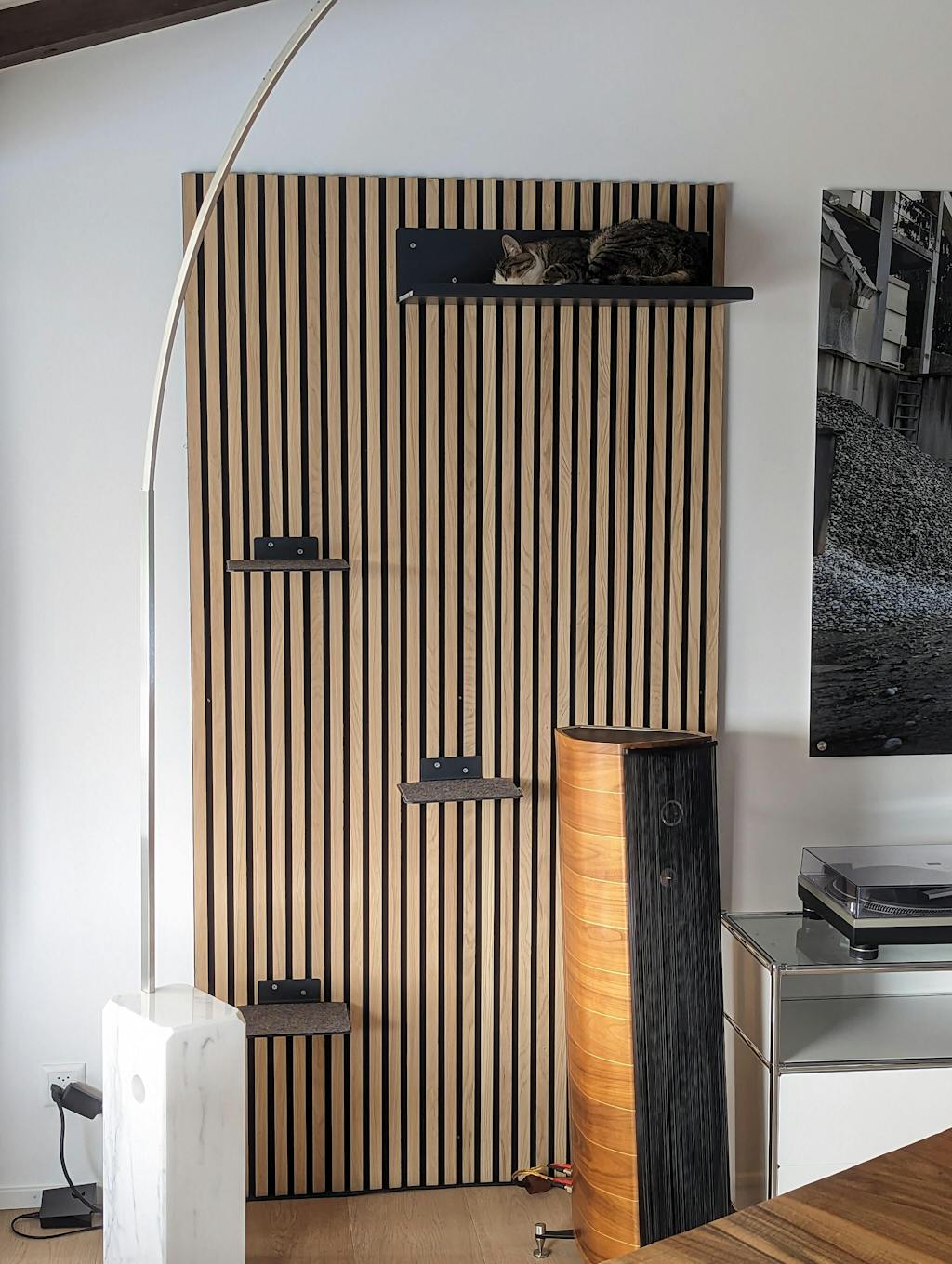 Leider war die Wandliege am Ende doch zu schwer für die Wand wo sie hätte hin sollen, jetzt ist es aber eine super Auf-dem-Regal-Liege. Sieht hochwertig auf und ist sehr unaufdringlich. Die Katzen lagen bzw. saßen auch schon Probe.