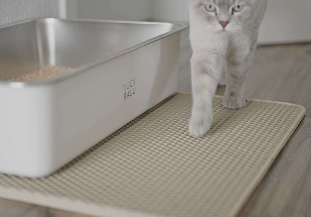 Mais où est donc passée la litière du chat ? Grâce à LOOMAT, un tapis de litière pour chat à double couche, finis les grains éparpillés partout! Il retient efficacement la litière après chaque passage de ton chat, protégeant ainsi ton sol et gardant ta maison toujours propre.