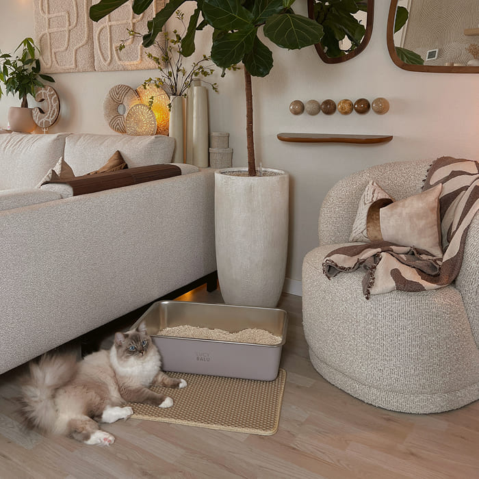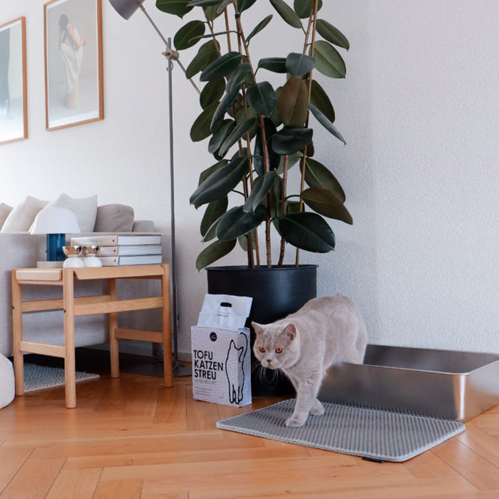 • Antidérapant. Il tient parfaitement en place, même lorsque ton chat bondit hors de sa litière.