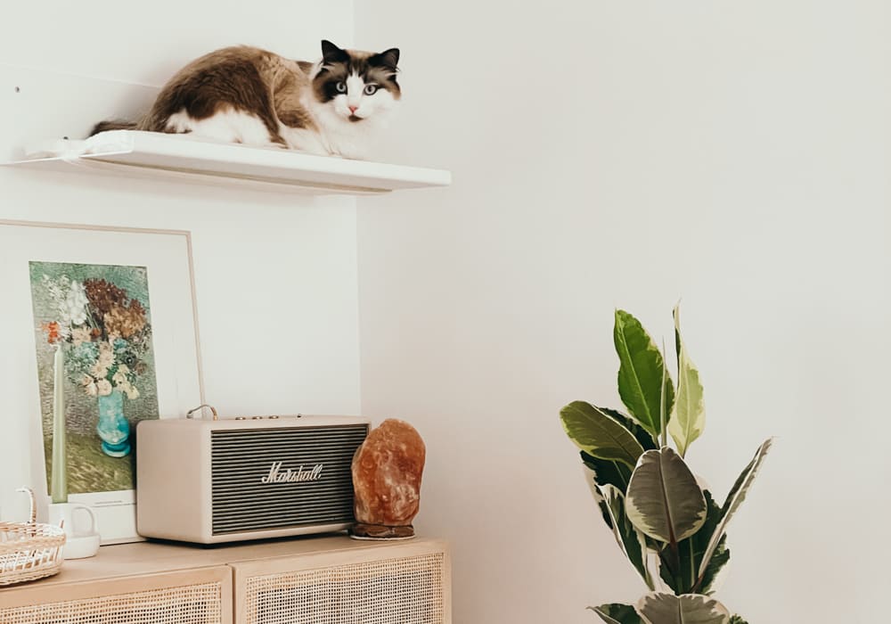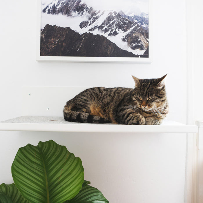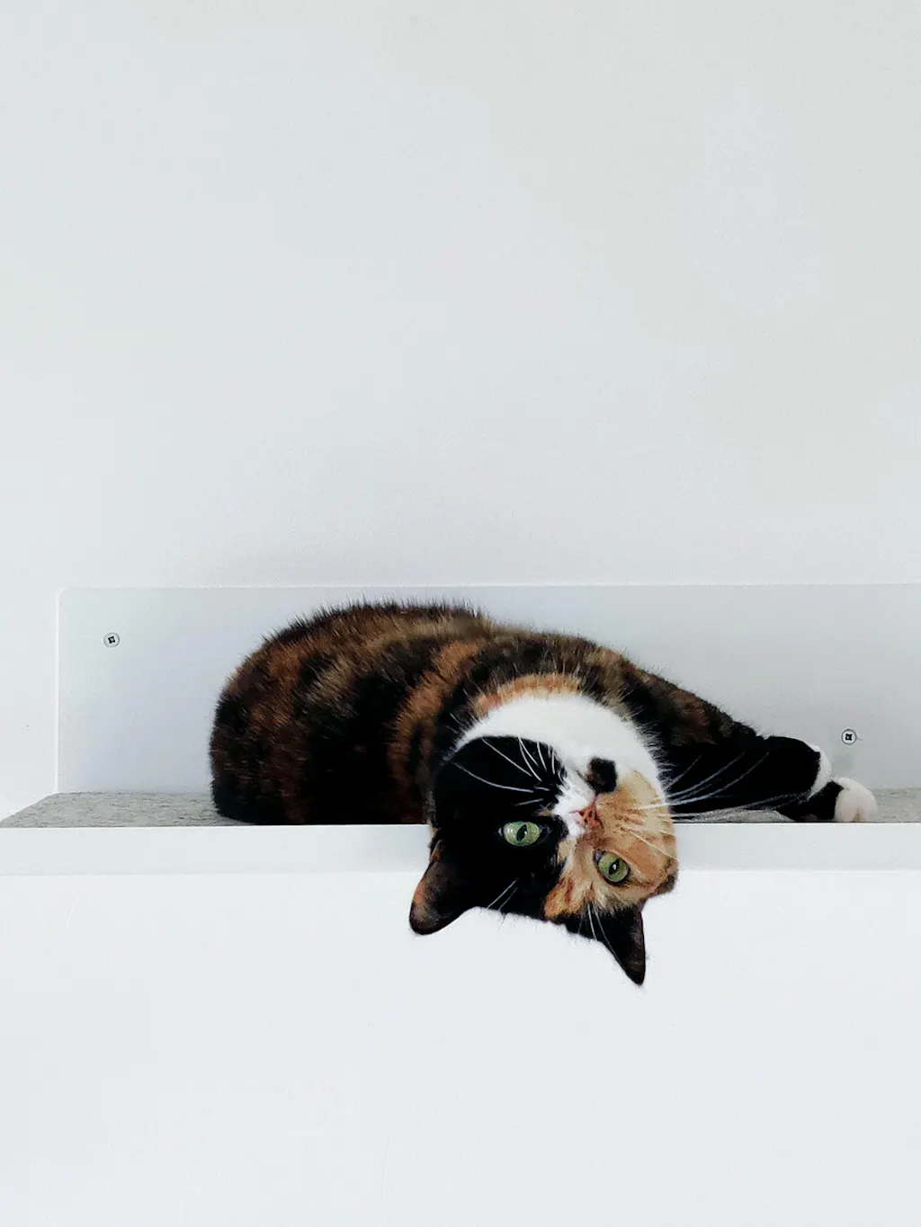 S'il n'est pas avec toi, il se trouve dans son endroit préféré. La plateforme murale STRAIGHT, spécialement conçue pour les chats, est très discrète, mais devient vite un incontournable pour se détendre et observer le monde d'en haut.