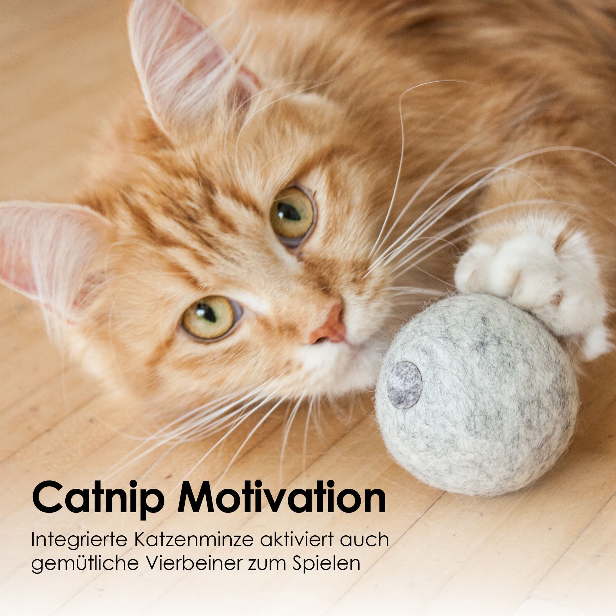Un atout en plus dans une balle ! Le feutre stimule naturellement les chats, et la MINT BALL, enrichie en herbe à chat, est également rechargeable.