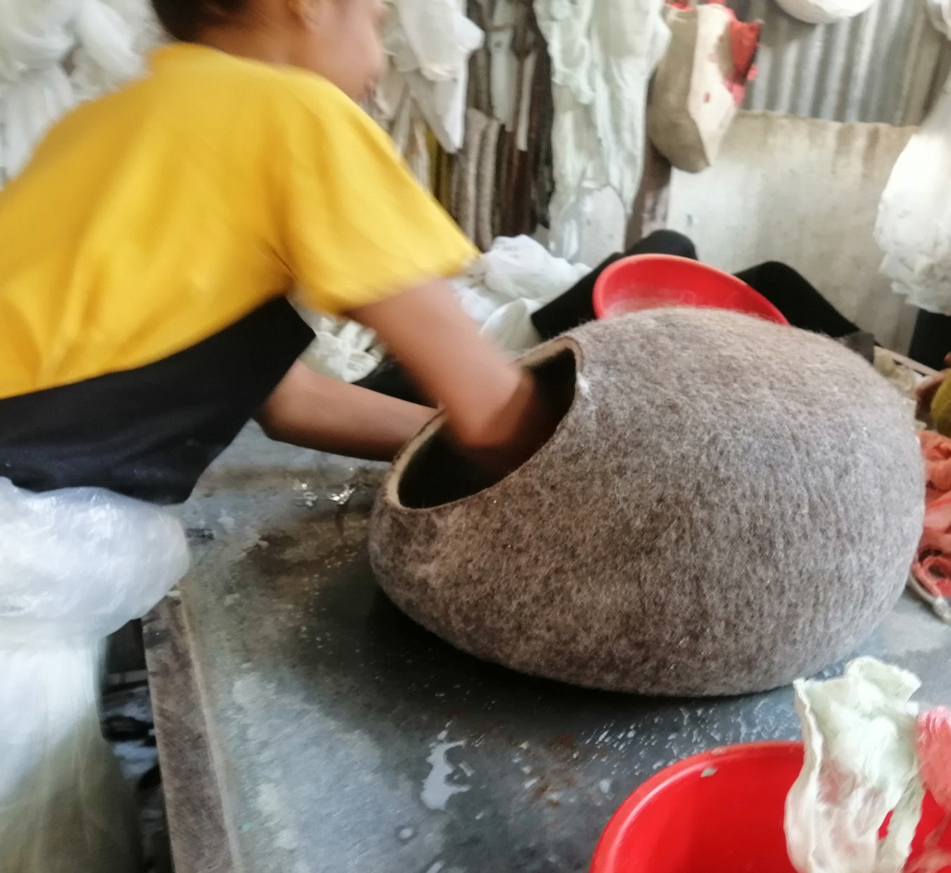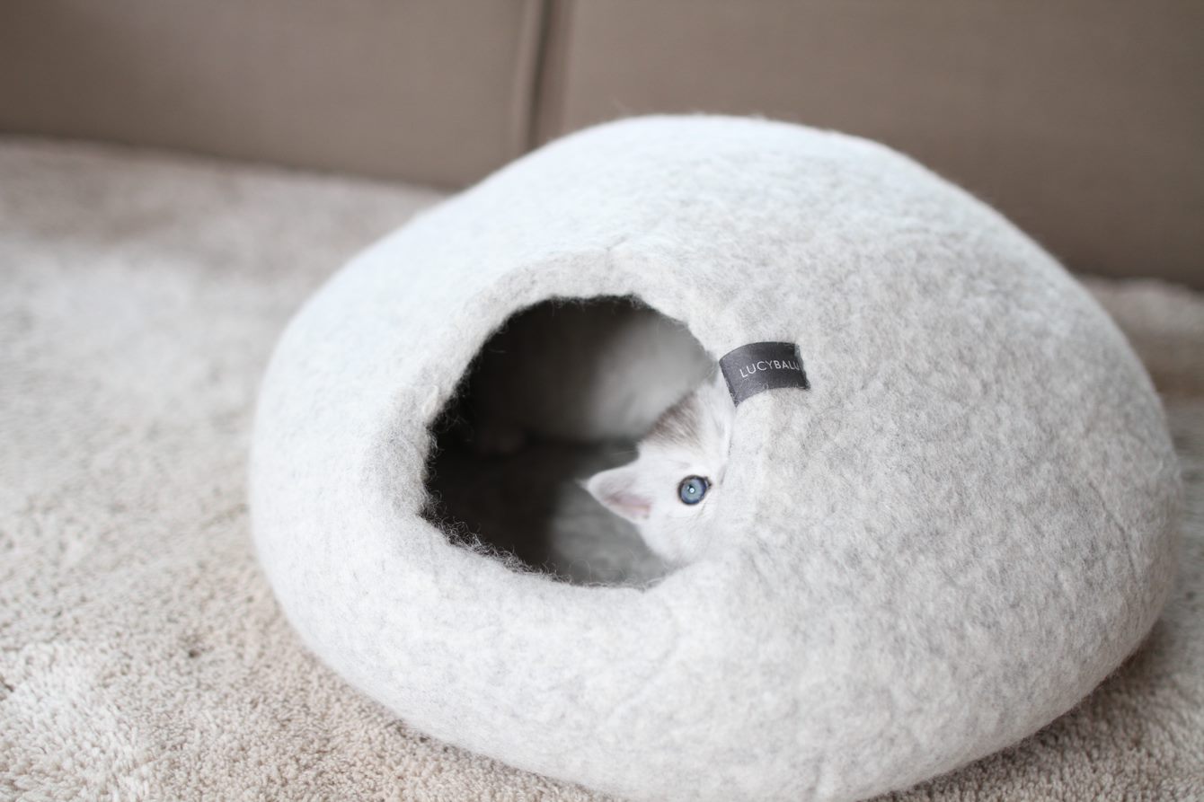 Neben Komfort und Design spielt Hygiene bei Katzenmöbeln eine entscheidende Rolle – und genau hier zeigt die PEBBLE Filzhöhle ihre wahren Stärken. Wollfilz ist von Natur aus selbstreinigend, was bedeutet, dass Gerüche kaum eindringen und Haare einfach abgebürstet werden können. Durch die antistatische Wirkung haftet deutlich weniger Schmutz an als bei synthetischen Materialien. Für Allergiker-Haushalte oder Katzen mit sensibler Haut ist eine hygienische Katzenhöhle Filz daher ideal. Gleichzeitig ist die Höhle überraschend pflegeleicht: regelmäßiges Ausklopfen, Lüften und gegebenenfalls vorsichtiges Handwaschen halten sie dauerhaft frisch. Auch in puncto Nachhaltigkeit überzeugt PEBBLE. Die Verwendung von mulesingfreier Wolle und die handwerkliche Produktion machen die Höhle besonders langlebig und ressourcenschonend – ein großer Vorteil gegenüber industriell gefertigten Kunststoff-Katzenhöhlen. Die weiche, natürliche Struktur wirkt zudem beruhigend und lädt Katzen dazu ein, sich einzukuscheln, zu entspannen oder ein kleines Nickerchen abzuhalten. Ob als Katzenhaus Filz, gemütliche Schlafhöhle oder modernes Wohnaccessoire – PEBBLE verbindet Funktion, Handwerk und Naturmaterialien in einer Weise, die sowohl Katzen als auch Menschen begeistert. Wer nach einer langlebigen, stilvollen und naturbelassenen Katzenhöhle sucht, findet in PEBBLE die wohl kuscheligste und hochwertigste Lösung.