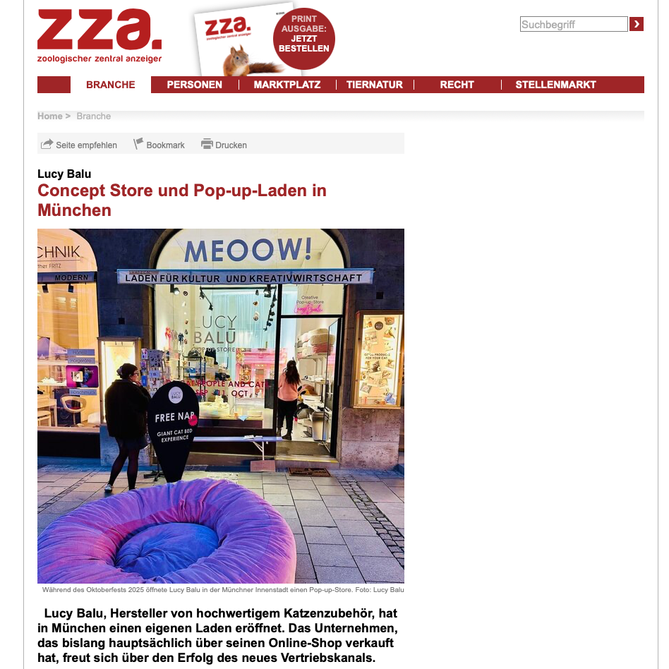 Der Fachverband berichtet über den Zoologischen Zentral Anzeiger ZZA über den neuen Concept Store von LucyBalu