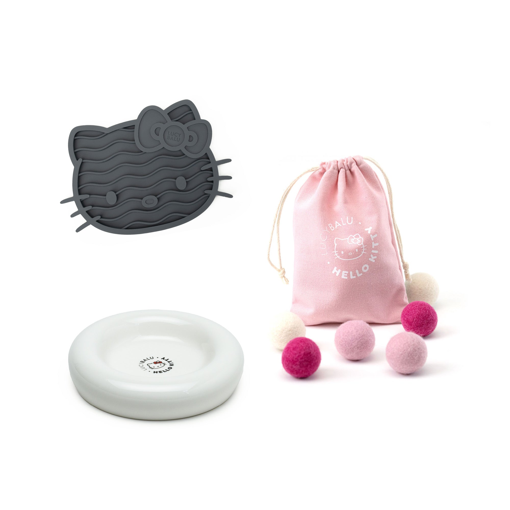 Verwen je kat - Hello Kitty stijl. Met de BALLS, DROP en ZENCAT set breng je afwisseling in het leven van je geliefde tijger.