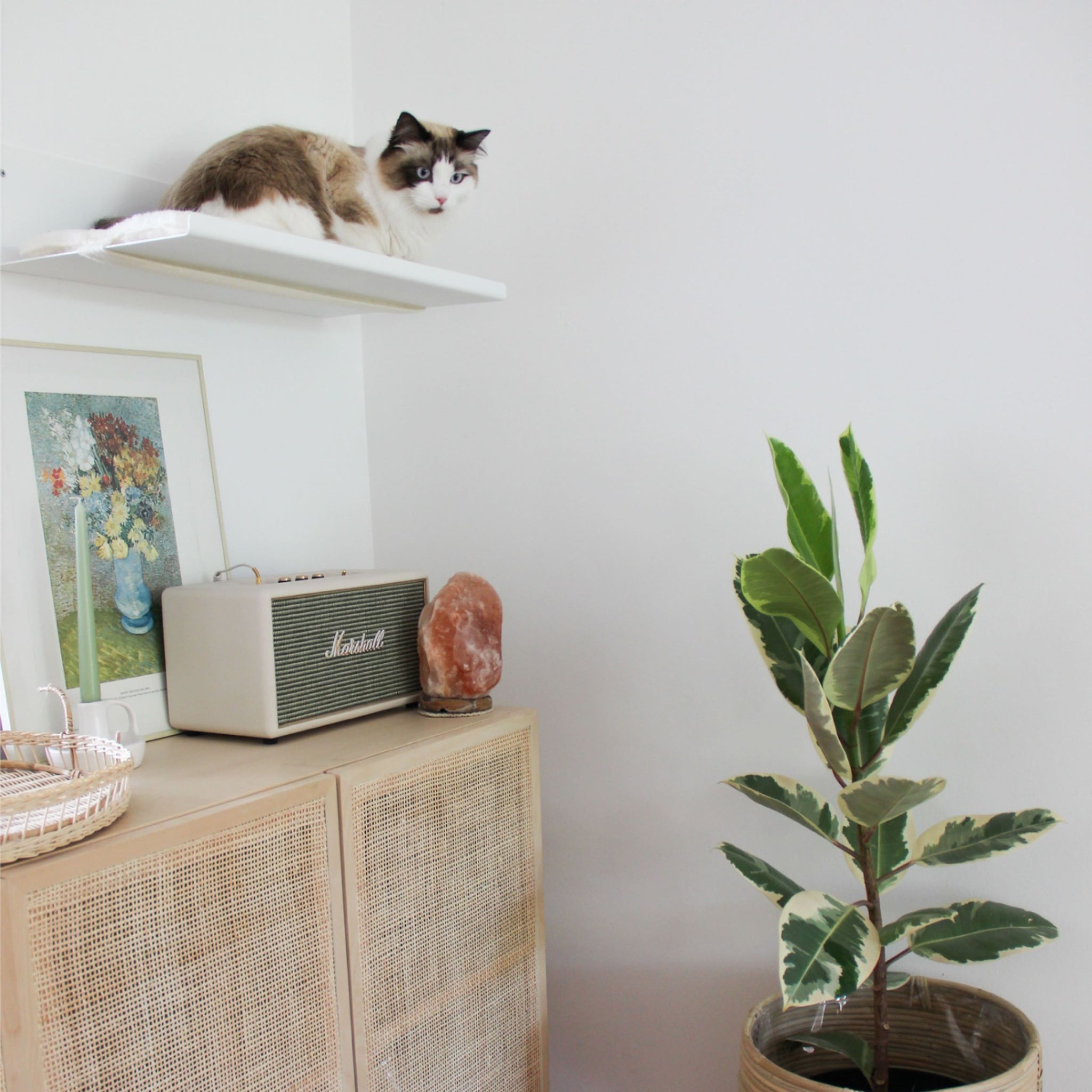• Plek om terug te trekken. Rusten of observeren vanaf een veilige plek. STRAIGHT kun je bevestigen waar je maar wil, of het nu onder het raam is of hoog aan de muur van de woonkamer.