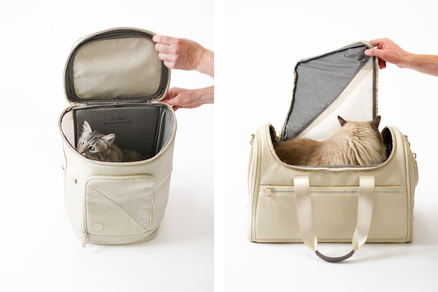 Wir haben sowohl beim Rucksack als auch bei der Tasche auf großzügig gestaltete Öffnungen geachtet. Nicht nur von oben, sondern auch von vorne bzw. von rechts und links können Katzen so bequem Ein- und Aussteigen.