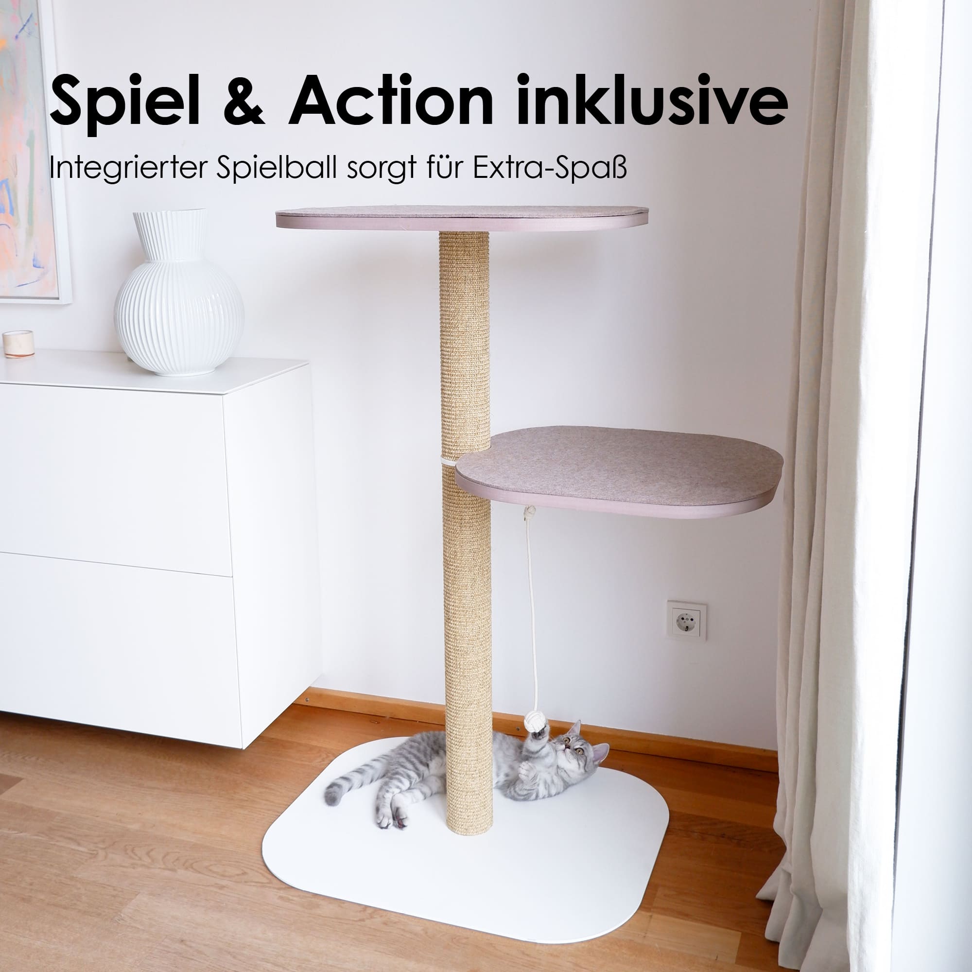 Wir sind absolut begeistert von diesem wunderschönen Kratzbaum! Unser Kater liebt ihn vom ersten Moment an – er nutzt ihn täglich zum Spielen, Klettern und Schlafen. Besonders positiv fällt auf, wie gut sich der Kratzbaum ins Interieur einfügt. Das Design ist schlicht, hochwertig und wirkt wie ein echtes Möbelstück statt wie klassisches Katzenzubehör.