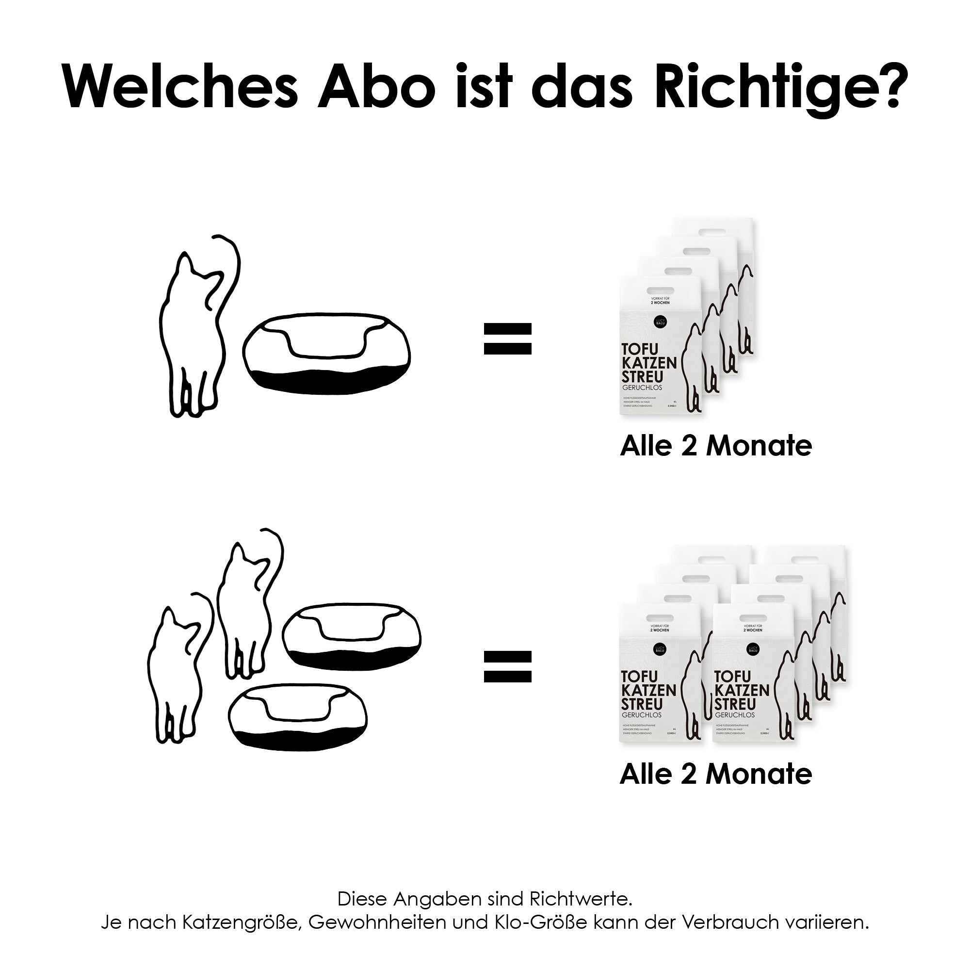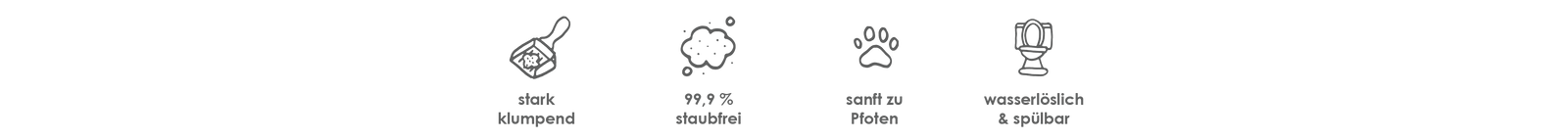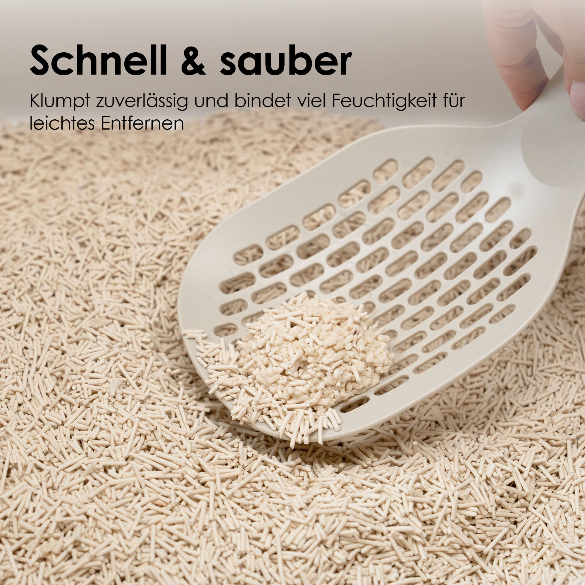 TOFU bildet feste Klumpen, die sich sauber aufnehmen lassen – ohne zu zerfallen oder zu schmieren. Und weil TOFU Streu wasserlöslich ist, entsorgst du die Klumpen ganz bequem in kleinen Mengen über die Toilette.