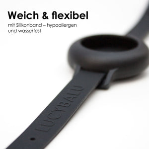 • Gesund und robust. Das Halsband ist hypoallergen und wasserfest. Es besteht zu 100% aus Silikon, das AirTag-Gehäuse wird aus lebensmittelechtem TPE gefertigt.