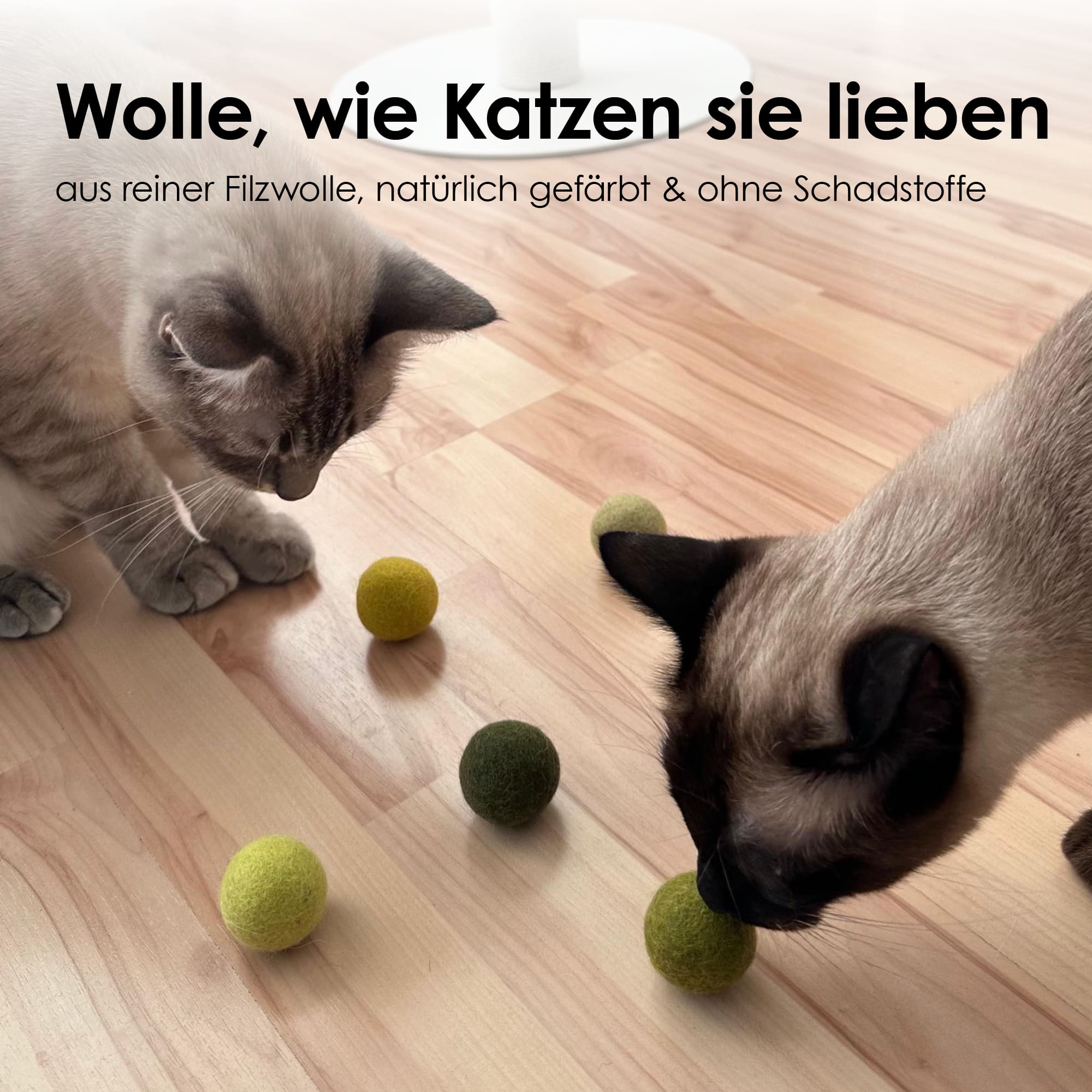 Spielzeit mit Stil – und einem Hauch Matcha. MATCHA MIX bringt frischen Wind ins Spielzeugregal deiner Katze. Während du deinen Matcha Latte genießt, tobt dein Stubentiger mit den sanft grünen Filzbällchen durchs Wohnzimmer – ganz ohne Lärm, aber mit viel Spaß.