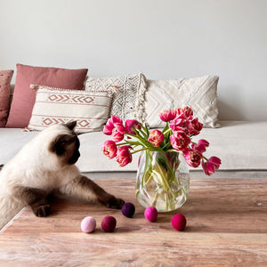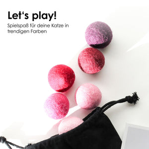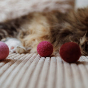 Katzenspielzeug zur Pantone Trendfarbe des Jahres 2023 "Viva Magenta". Die Filzbällchen bringen nicht nur Leben in die Bude, sondern vor allem Spielspaß für deine Katze.