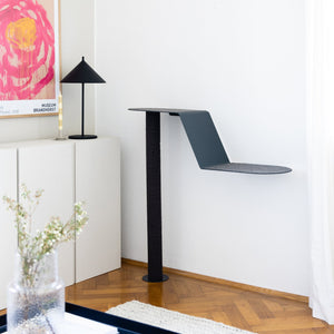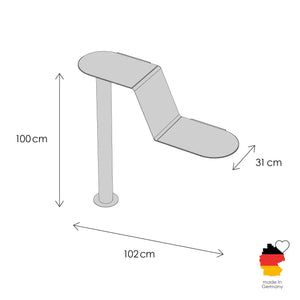 • Anthrazit: Metallelement in Anthrazit (RAL 7016). Filzauflage in Anthrazit Melange, Kratzstamm in Anthrazit