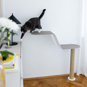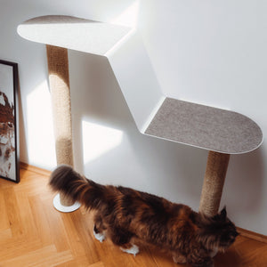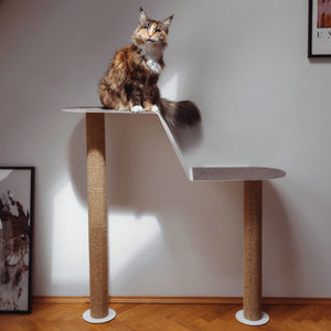 Beim Wandkratzbaum MAISONETTE bist du genau richtig. Mit zwei schräg übereinander angeordneten Liegeflächen bietet die stabile Wandliege ausreichend Platz zum dösen, spielen und klettern. Die Kratzsäule verbindet die Wandliege mit dem dem Boden und macht MAISONETTE so stabil. Für eine extra Portion Stabilität kannst du sogar zwei Kratzsäulen anbringen - eine mit 100 cm Länge und die andere mit 70 cm Länge. Achte in dem Fall darauf, dass du die Kratzsäulen montierst, bevor du die Filzauflage aufklebst. Mit MAISONETTE erwirbst du eine Katzen Kletterwand, die nicht nur bei deinen Stubentigern gut ankommen wird.